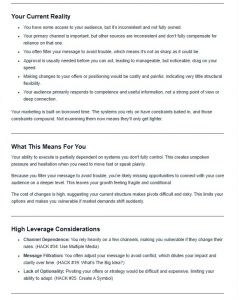 But this simulation will show you the brutal truth most business owners never see - that you're potentially building momentum on borrowed ground — a foundation of sand - and when the rules change (they will), your growth, message, and reach could vanish overnight.